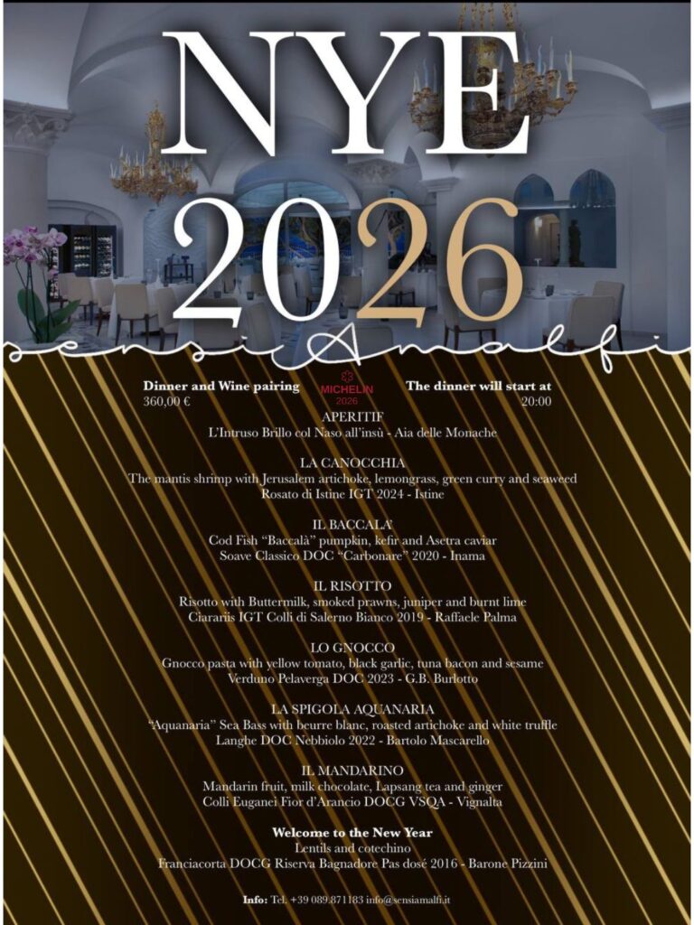 Sensi Restaurant in Amalfi welcomes New Year’s Eve 2026 with an exclusive tasting menu created by Michelin-starred chef Alessandro Tormolino. The evening features a refined culinary journey that blends technique, Mediterranean flavors, and contemporary elegance, paired with a curated selection of wines designed to enhance each course.